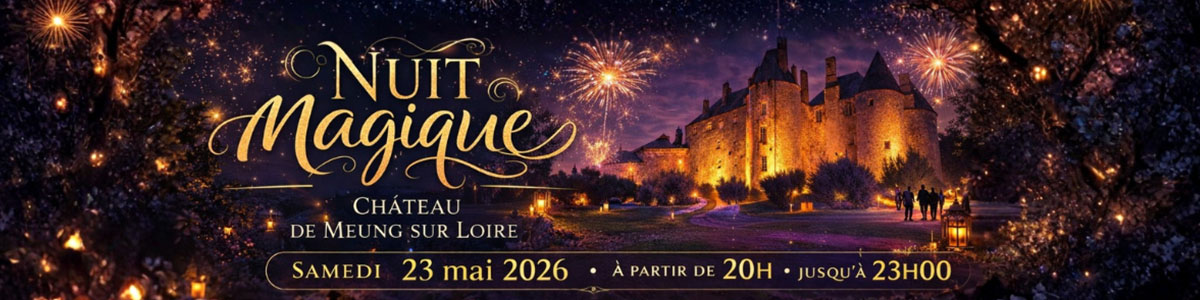 Erleben Sie ein unvergessliches Erlebnis im Schloss-Park von Meung-sur-Loire, nahe Orléans, anlässlich der Magischen Nacht am Samstag, dem 23. Mai 2026, einem märchenhaften Abend im Herzen der Loire-Schlösser.
