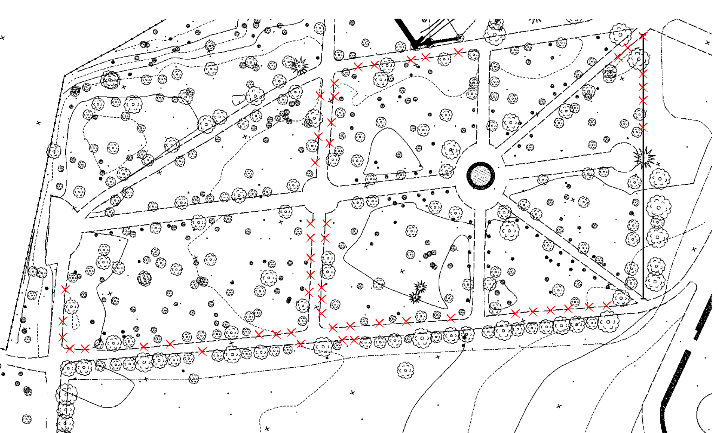 The trees will be planted along the walkways of the park’s historic, according to the plan on the left, in the respect for the landscape design of the original.